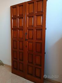 Vendo portoncino in legno massello a due ante, in buone condizioni generali. Si tratta di una struttura solida, dal design classico con pannelli in rilievo, perfetta per chi cerca un ingresso elegante e resistente.