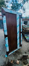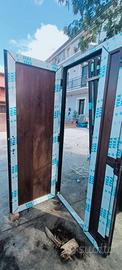 Portoncini di ingresso in PVC (misure 1,10 mt larghezza, 2,10 mt Altezza. Misure ingombro massimo comprensive di telaio). Nuovo mai usato, colore legno scuro come in foto, da ritirare in sede. Maniglia cilindretto con chiavi e spioncino sono le minuterie disponibili.