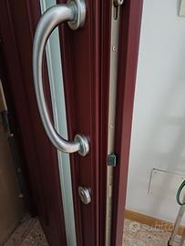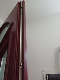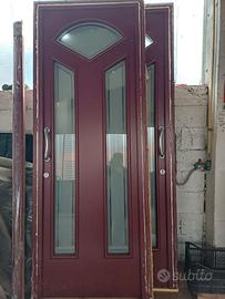n. 2 Portoncini di ingresso ( 1 con apertura dx - 1 con apertura sx) in legno okoumè laccato rosso spessore 68 mm con doppia guarnizione sul telaio fisso, con vetro camera satinato, e con serratura sicurtop (larghezza 940 altezza 2440).