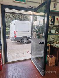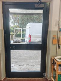 Vendo porta in alluminio con vetri antisfondamento bruniti, molla di chiusura e serratura a spingere. Cm. 113 x h. 216 Solo ritiro sul posto o consegna in zona con contributo di trasporto da concordare