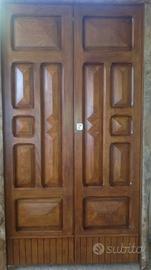 Portone ingresso a due ante in legno massello di castagno con cerniere di ottone con cuscinetti Completo di serratura sovrapposta Misure esterne 220 h x 124 l Int. 213 h x 110 L Spessore telaio 7 cm