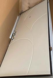 È stato montato per pochi mesi e poi sostituito per necessità con portone con vetrata. Attualmente imballato in deposito.