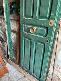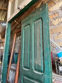 Vendo portone antico in legno,compreso di telaio,parte esterna verde parte interna bianca;misure altezza 310 cm spessore 10 cm larghezza 146 cm;il portone comprende anche nella parte superiore una sorta di lucernario con una piccola finestra