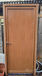 Vendesi portone di ingresso in Alluminio PVC, Interno bianco venato ed esterno marrone, come da foto.