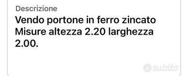 Vendo portone in ferro zincato pesante Misure 2.20 altezza 2.00 larghezza.