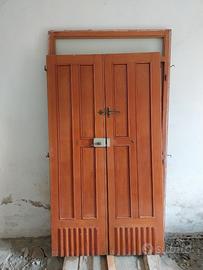 Portone in legno massello fatto a mano, con sopraluce in ottime condizioni. Dimensioni 110x225