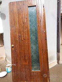 vendo portone legno massiccio da riverniciare con vetro e lavorazione in ferro battuto misure 230 × 100 spessore 8 cm