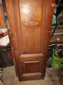 Bellissimo portone d'ingresso in legno castagno massello con rinforzo in ferro interno. Altezza 2,30 larghezza 106. Composto da due ante, completo di serratura con chiave e staffe in ferro di tenuta per muro. Completo di cornice a muro sua originale. Più suo cancello a due ante in ferro pieno battuto, ornamentale. Completo di telaio in ferro, passetti blocca anta in ferro, serratura blindata resistente.