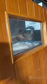 Vendesi portone in legno molto robusto dotato di finestrino di illuminazione e ispezione e bocchetta di areazione in basso , il portone ha le seguenti dimensioni di luce interna esclusa battuta cm 81 larghezza per cm 191 di altezza . il telaio non è presente