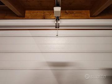 Vendo per inutilizzo portone garage sezionale in PVC, finitura legno a quadrettoni, motorizzato. Perfettamente funzionante, pari al nuovo. Misure installazione 385x245, luce passaggio 368x222.