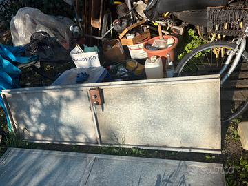 N 2 porte in lamiera e ferro zincato rispettivamente : 1) due ante larga 215X200; 2) piccola larga 115X205; Perfettamente finziinanti e gia smontate sono solo da portare via.
