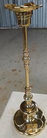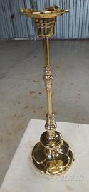 Posa cenere a piedistallo in Ottone con lavorazioni. Dimensioni, base di 20 cm altezza 60 cm