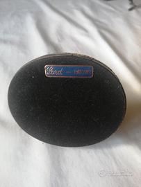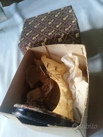 Posa orologio da comodino a forma di gatto in ottone e base in tessuto gobelin e circonferenza in pelle. Marchio Lord Patent. Nuovo, mai usato e dotato di scatola originale. Misura 8,5 x 7,5 x 11.