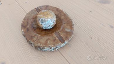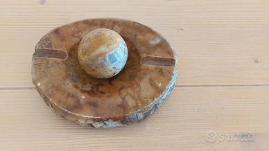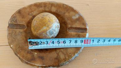 Posacenere in pietra naturale alabastro, lavorato a mano, diametro 17 centimetri con sfera decorativa diametro 5 centimetri