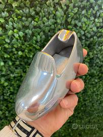 Vendo originale posacenere artigianale realizzato interamente in alluminio massiccio (probabile), finemente lucidato a specchio, dalla particolare forma di scarpa elegante. Un oggetto unico, dal design ricercato e dall'aspetto moderno ma al tempo stesso vintage, perfetto sia come posacenere che come oggetto d’arredo o soprammobile da collezione.