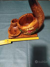 Importante e introvabile posacenere completo di Catania e dell'Etna, a forma di Pipa. Fatto in gesso dipinto. Risale agli anni 60/70. Peso 2 kg circa.