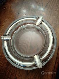 Posacenere in cristallo e argento. Anni '60. Diametro cm 19,5 Altezza cm 4.