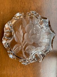 Posacenere in cristallo con incisione floreale di alta qualità, un pezzo vintage perfettamente mantenuto, ampie dimensioni e perciò utilizzabile anche come ciotola portacaramelle