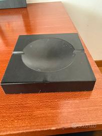 Set composto da un posacenere e un accendino. - Posacenere quadrato nero con design a conca. - Accendino cubico nero con finiture cromate.