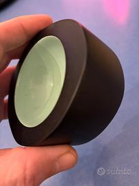 Stupendo posacenere firmato Sentou, realizzato in vero legno. La parte interna é lucida, color verde Tiffany, la parte esterna é nera opaca. In perfette condizioni generali. Visionabile in zona Milano nord, vicino la metro di Sesto Rondó.