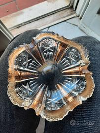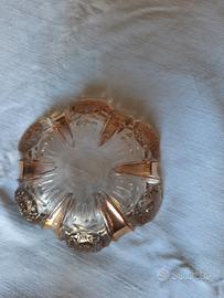 posacenere in vetro lavorato con bordo color oro di diametro cm 14