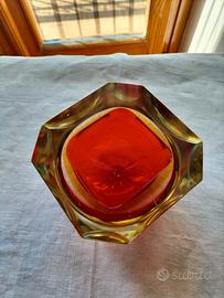 ciotola in vetro di murano a forma conica attribuito ad Alessandro Mandruzzato Sommerso sfaccettato rosso ambra
