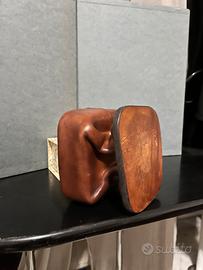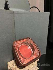Bellissimo e raro posacenere mid-century in pelle e vetro attributo a Jaques Adnet.