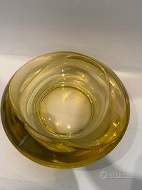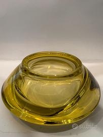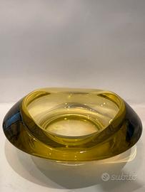 raffinato posacenere/svuotatasche originale di Murano, risalente agli anni '60/'70. Il pezzo è realizzato con la celebre tecnica del "Vetro Sommerso", caratterizzato da uno splendido colore giallo ambra che crea bellissimi riflessi a seconda della luce.