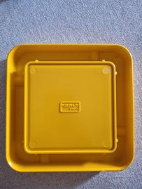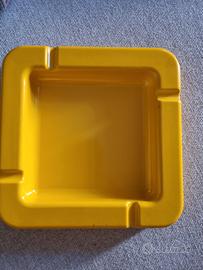 Posacenere quadrato in melamina giallo Neolt anni '70 con scatola originale.