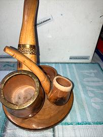 Posacenere scultura pipe legno fiammiferi e portasigarette soprammobile #vintage