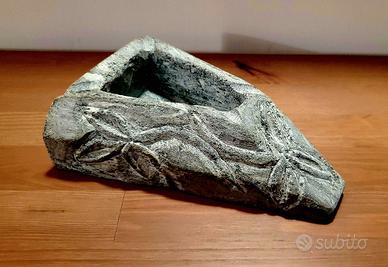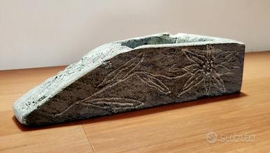 Bellissimo portacenere-portaoggetti in pietra ollare di artigianato valdostano, con decorazioni a stella alpina.