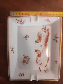posacenere in porcellana collezione "Galli Rossi" con decorazioni in oro zecchino.. Misure in foto.