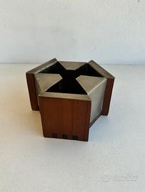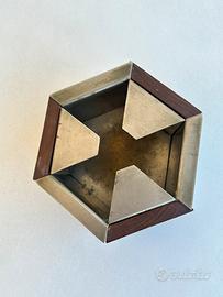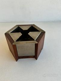 Favoloso posacenere esagonale in legno e metallo marchiato a fuoco alla base modello urano in ottime condizioni anni 60