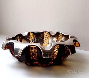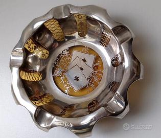 Un posacenere utilizzabile anche come svuotatasche in vetro e foglia di argento Diametro 14 cm, altezza 5