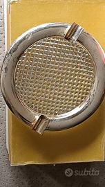 Posacenere vintage anni 60/70 con inserto in vetro lavorato a motivo geometrico effetto taglio diamante e cornice metallica.
