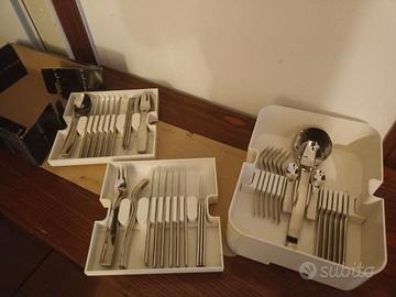 Set completo di posate in acciaio, vintage anni 80 di design Marca SILVERSUD 206 ELLE Dimensione scatola integra 21x31x10 cm.