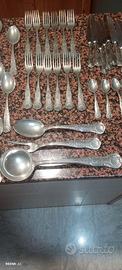 Vendo 11 cucchiai,12 forchette,12 coltelli,7 cucchiaini un mestolo un cucchiaio grande e un forcone grande tutto in argento 800 si accettano offerte su cui valuto