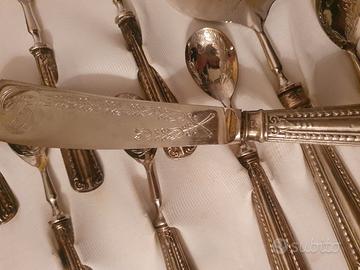Posate Argento Antiquariato...servizio artigianale usato per dessert ...integri e bellissimi in argento segnalato sui manici ...800.....in originale scatola ..epoca ..per collezionisti amanti di arte e antiquariato