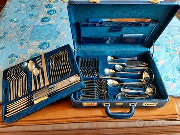 Servizio di posate da 12 completo, in acciaio e fregio dorato