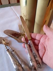 Set vintage dessert stile 800 con porta posate incluso Piccoli segni d'usura del tempo Placati in argento 800
