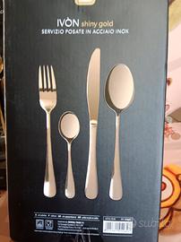 elegante set posate colore oro lucido acciaio inox lavabile in lavastoviglie il set di posate è composto da 6 forchette 6 cucchiai 6 cucchiaini 6 coltelli disponibili anche più set