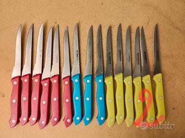 Vendo Lotto 1 16 coltelli da carne Lotto 2 15 coltelli colorati da carne Lotto 3 19 forchette Lotto 4 33 forchette Lotto 5 29 forchette Lotto 7 7 cucchiai Lotto 8 5 coltelli Lotto 9 19 coltelli Tutto in acciaio inox. Tutto in ottime condizioni