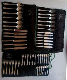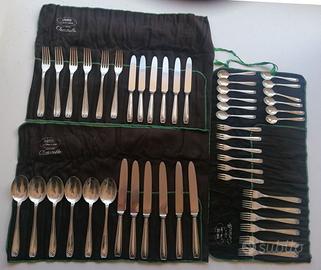 Si tratta di 48 pezzi datati anni 60, in perfette condizioni, lucidati a specchio e protetti in tre custodie tessili originali della Christofle, modello “Pacific Silver Cloth”.