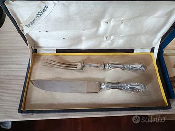 vendo posate come da immagini , come si evince dalle foto sono molto vecchie , le scatole presentano segni di usura ottime per collezionisti -antiquari. prezzo poco trattabile ritiro a mano non spedisco visto piaciuto