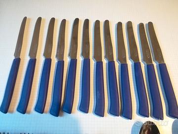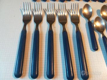 Set misto di posate da cucina in acciaio inox, 12 coltelli delle “home stainless steel”, 5 forchette, 5 cucchiai e 3 cucchiaini tutti della “abert inox” prodotti in italia.