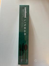 Cinque confezioni ognuna contenente 1 posto tavola della Sambonet-Linear, in acciaio inox 18/10: forchetta, coltello, cucchiaio.