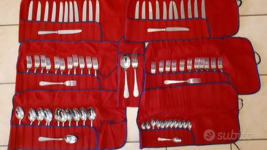 ormai sono in casa da trent'anni chiuse in un cassetto nella loro custodia di panno. Trattasi di servizio completo da 72+2 pezzi acciaio 18/10 con lavorazione della loro impugnatura della EME Sambonet