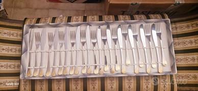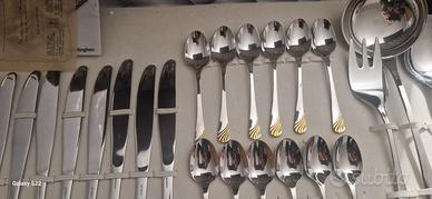 Servizio di posate Gottinghen in acciaio 18/10 con dettagli in oro zecchino 24 carati nel manico.