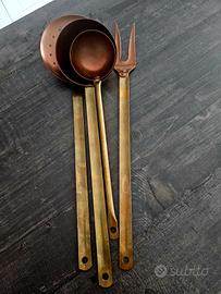 Set utensili cucina in rame. Sempre tenuti appesi in tavernetta. Bellissimi e perfetti