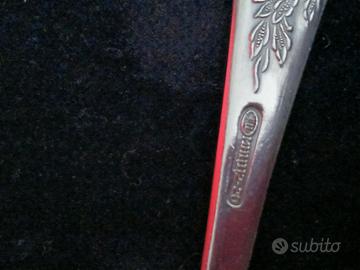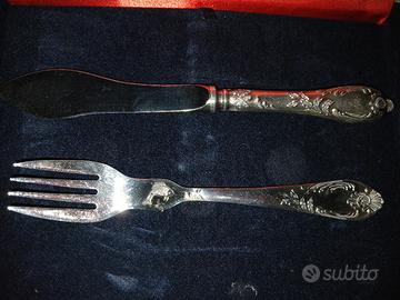 Le posate presentano una classica decorazione floreale e un pesce sul retto e sul verso della forchetta.